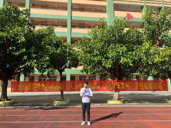 在这骄阳似火的七月,大涌旗风学校全禄校区积极响应中山市教体局的号召,7月13日上午,大涌旗风学校全禄校区利用升旗仪式开展了“人人参与创文,个个共享文明”宣讲教育活动。本次活动的目的是为了参与、推动全国文明城市创建工作,通过广泛宣传,认真学习,人人参与,让创建活动深入学生心灵,使践行社会主义核心价值观活动化为行动。
