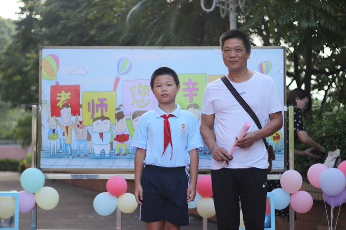 为了迎接一年一度的教师节,旗北小学全体行政和体艺科组提前精心策划,给旗北小学全体教师送上最真挚的祝福。上午7时20分,教学楼楼梯铺上了鲜艳的红地毯,装点上节日的气球,学生每人手持鲜花,静候旗北小学教师的到来。在“老师,我想对您说”的展板上,有学生写的祝福语,有学生亲手绘画卡通版的教师照,尽情地展现旗北教师活泼的另一面,同时也为全体教师送去了节日的惊喜。每位教师在展板前驻足观看,脸上绽放喜悦的笑容。随后,各位教师走上红毯,两旁学生送出节日的祝福,送出鲜艳的花朵和合影留念,让全体教师惊喜满满。