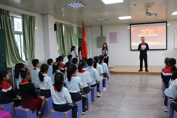 为全面提高少先队员的整体素质,培养队员的组织能力和管理能力,促进学校少先队工作向着规范的方向发展,形成“自己的活动自己搞、自己的阵地自己建、自己的事情自己管”的少先队工作新局面,3月28日,旗南小学开展了“请党放心,强国有我”少先队大队委员竞选活动。