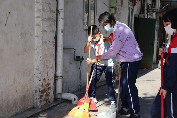 下午3点,志愿者和队员们在大队辅导员李楚娟老师的带领下,走进南村老人院、旗南村委、南村市场周边进行大清洁活动。活动期间,大家分工合作,不怕脏,不怕累,团结一心,认真地打扫地上的每一个角落,经过一个多小时的努力,整个街道焕然一新,大家把干净与美好留给了他人。少先队员们在弘扬了新时代雷锋精神的同时,用行动把雷锋精神在社会生活中传播。