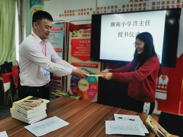 梁钜全校长也对新学期德育工作做了精心部署,并强调了本学期的德育工作重点。他强调班主任是一个班级的主要领导者、组织者、实施者和管理者,其工作能力的高低不但影响着整个班集体的教育教学质量,更关系学生的成长与进步。梁校长对班主任工作寄予了厚望,并在现场进行了授书仪式,以此鼓励班主任不断学习,从书中汲取方法与技巧,提升班级管理能力。
