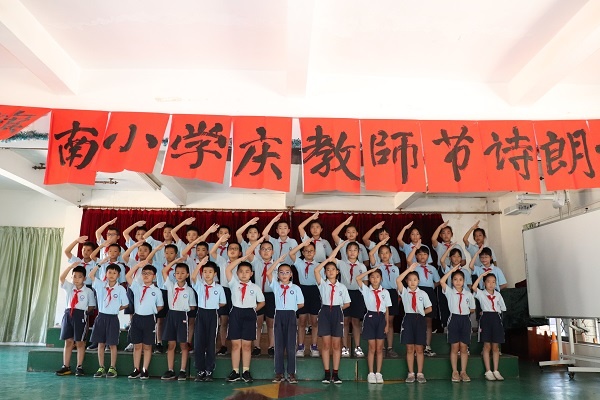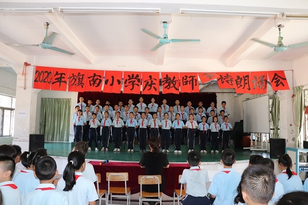 9月10日上午,旗南小学全体师生齐聚学校礼堂,开展了以“师恩永记心间,劳动促我成长”为主题的庆祝教师节诗歌朗诵活动。