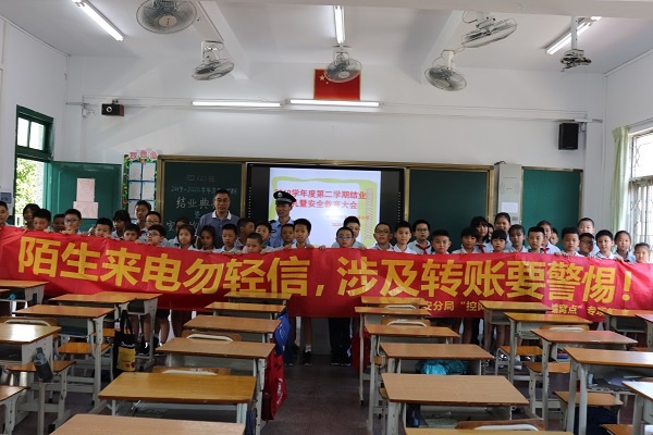 结业典礼上,先由各班班主任主持,让学生在班上观看了“2020年交通安全在心中”为主题的交通安全视频,接着由法制副校长唐警官利用广播给全体师生上了一节精彩的法制教育课。主要围绕假期交通安全、网络安全、防拐骗等方面,结合近期发生的校园外安全事故的案例,传授了一些实用的安全防护措施和技巧,让全体学生深受教育。通过讲座,学生们进一步增强了法纪意识,树立了遵纪守法的观念,培养了学生良好的行为习惯,为预防未成年人犯罪,促进学生健康成长起到积极的促进作用。接下来,学校领导梁绮琴校长总结了一个学期以来师生工作和学习情况。在这个学期里,在全校师生的共同努力下,同学们在德、智、体、美、劳等方面都取得了可喜的成绩。梁校长还勉励师生在假期多参加有益的文体活动,多看看课外书籍,严格执行学校的要求,过一个平安、愉快、有意义的暑假。最后表彰一批优秀师生,并对期末考试中,获得优异成绩的同学颁奖,鼓励学生继续努力,争取更大进步。