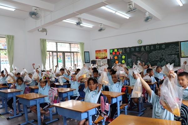 接着学校还特意为每一位队员发放了提前准备的礼物,每位队员都领到一份礼物,校园里处处洋溢着节日的欢乐气息。
