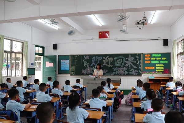 5月25日,旗南小学迎来了第四批返校复课的学生。