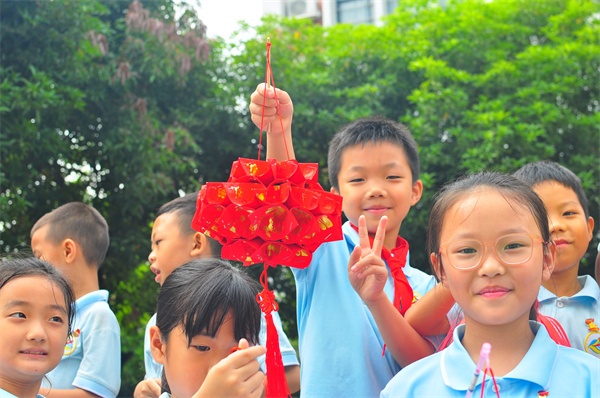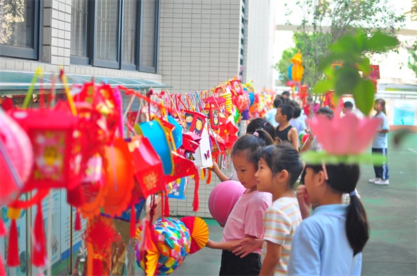 制作花灯,是中秋传统习俗之一。课余时间,一至三年级的同学们与家长齐齐动手,利用铁丝、麻绳、彩纸等各种各样的材料,你画我涂,你剪我贴,共同参与制作了出创意无限的迎中秋灯笼。老师们将五颜六色的灯笼,整齐有序地悬挂起来,把校园装扮得更漂亮了,为传统的中秋佳节增添了几分乐趣。