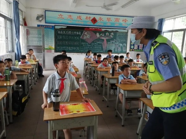 交警大队郭警官则从交通安全方面作了教育。郭警官用通俗易懂的语言,向同学们讲解了在假期出行中应该怎样过马路、怎样乘坐交通工具、怎样避免交通事故的发生等交通安全常识,要求全体师生进一步增强安全意识,提高自我保护能力。同时通过“小手牵大手”活动,把安全出行的知识、文明交通的理念带到每一个家庭。