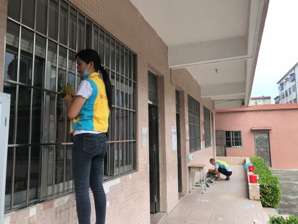 炎炎烈日,却抵挡不住岚田小学亲子志愿服务队的工作热情。下午4点,志愿者们进入校园,冒着酷热,卷起袖口,不怕脏、不怕累,热火朝天地劳动起来。有的手拿垃圾袋清理绿化带,有的拎起水桶擦洗桌椅,有的拿起扫帚拖把清洁地板……大家积极热情地投身到清洁校园的志愿服务活动中,一个个忙碌的身影成为了校园里一道亮丽的风景线。