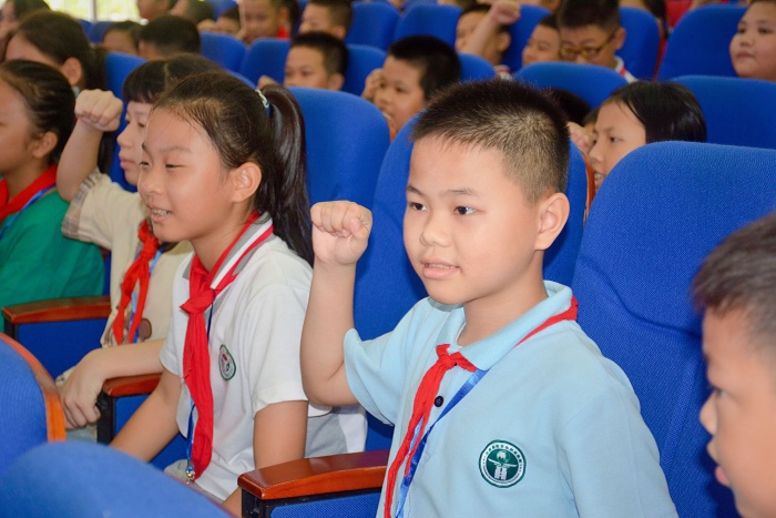 宣讲结束时,同学们还意犹未尽,他们表示:“听这场宣讲获益匪浅,作为少先队员,要从小听党话,感党恩,跟党走,为实现中华民族伟大复兴的中国梦时刻准备着。”