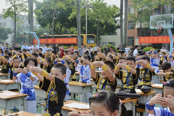 礼成退场后,一年级的同学表演了葫芦丝和五步拳,引得现场阵阵喝彩。