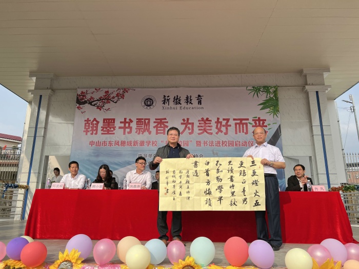 三月正是读书好时节。在中山市书法家协会、东凤镇文联的大力支持下,3月4日,东凤镇书法协会、穗成村委、穗成新徽学校迎来了以“翰墨书飘香,为美好而来”为主题的“书香校园”暨书法进校园活动启动仪式。