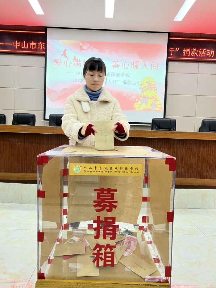 本次活动在校长肖晓的带领下,全体行政、各教研组代表、各班学生代表将一笔笔善款放进募捐箱内。他们用自己的实际行动诠释了一份奉献、一份感恩。积少成多,聚沙成塔,一份爱心,一份关怀,足以点燃一个孩子的希望。