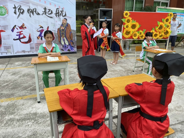 炎炎暑热悄悄藏,淡淡秋风送舒爽。9月10日下午,一场别开生面的一年级开笔礼在中山市东凤穗成新徽学校举行。活泼可爱的一年级新生在老师和家长的陪伴下,精神抖擞地齐聚运动场,接受着神圣的入学礼,用心感受着校园的温暖。