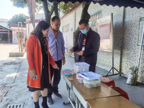 胡小明督学通过巡视校园,查阅资料,随堂听课等形式,针对校园文化、学校管理、条件保障等方面进行了细致的检查和指导。在巡视过程中,吴秀容校长向胡督学介绍了开学学校各项工作的进展情况。胡督学细致询问了学校的劳动教育及双减政策的落实情况,并认真查看学生晨午检的台账,了解学校对发热学生的管理和处置流程。