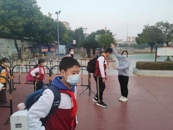 学校大门是校园疫情防控的第一道防线,把好校园第一道关卡至关重要。演练从模拟学生排队等候进入校园开始,学生分两个通道进入校门,经用体温测量仪检测学生体温后,体温正常者有序进入校园。当发现学生体温异常时,迅速用水银温度计进行复测,如果体温依旧异常,送至隔离室,上报行政并进行信息登记并联系卫生部门作进一步处理。