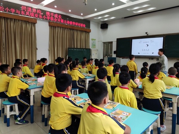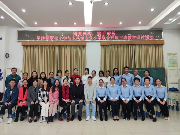 10月22日下午,东凤镇安乐小学和阜沙镇罗松小学以“同课异构,携手成长”为主题,开展小学语文古诗同课异构沙龙活动。