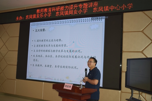“求木之长者,必固其根本,欲流之远者,必浚其泉源”。为进一步扎实推进教研课题工作的深入开展,提升全体教师的教育教学科研能力,8月31日上午东凤镇安乐小学、同安小学和中心小学三校联合特邀中山市教育教学研究室郭跃辉老师为教师们带来《教育科研课题的选题与申报》专题讲座。