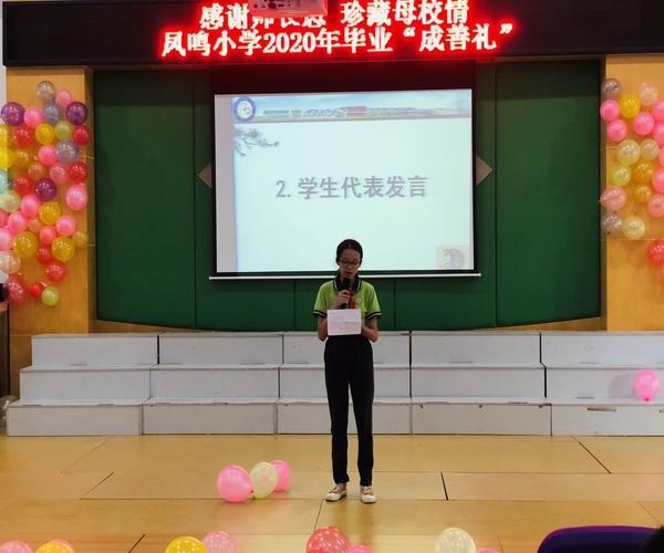 本次典礼分为三个篇章:难忘母校篇、难忘恩师篇和感恩父母篇。一段温馨的视频“青春纪念册”拉开了毕业典礼的帷幕,一起回顾了六年来在凤鸣小学的学习生活。紧接着,刘松校长为全体毕业班同学致辞,愿凤鸣学子有理想,有担当,谨记校训,在新的学习征程里,乘风破浪,直挂云帆。毕业班学生代表梁栩丽同学发言表达出了每一名六年级学生的心声,感谢老师,感谢同学,感谢父母。尽管这次毕业典礼,家长们不能现场参与,但是他们通过视频,真诚地感谢凤鸣小学对孩子们的悉心教育,祝愿孩子们能保持终身学习的信念,学有所成。