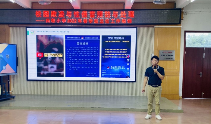 为了杜绝校园欺凌事件的发生,民和小学举行“预防校园欺凌”“预防性侵”工作培训。会上,黄逵明校长列举了校园欺凌事件产生的严重后果,防范校园欺凌采取的具体措施。针对本学期的安全工作,要求全体教师要深入学生的学习和生活,加强与学生的沟通与交流,要重视周围的校园欺凌苗头性倾向,更要全力做好校园欺凌的预防和治理工作,确保全校师生同心协力,共同抵制校园欺凌。