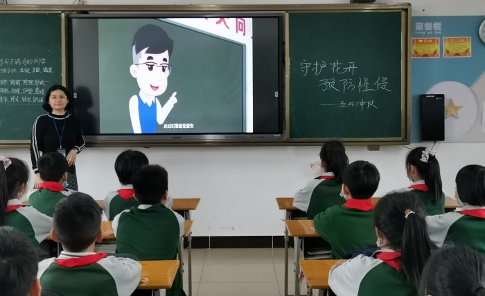 活动前,学校分管德育的阮丽霞主任向同学们普及了适合相应年龄段的性教育知识,教给学生自我保护的方法,让学生增强防性侵意识、远离危险。为有效预防少年儿童遭受性侵害,各年级班主任老师结合学生的年龄特点,设计并开展了形式多样的“防性侵教育”主题班会课活动。班主任有的透过游戏的方式带领学生认识自己的隐私部位;有的以ppt的形式展示不同的案例,让学生知道性侵害的行为不单单是被触碰隐私部位,还包括了被强制性观看色情影片或者强迫他人触摸对方的隐私部位等,让大家学习分辨和防范性侵害;还有的班主任采用游戏方式让学生知道在不同情况下应如何防范性侵害。