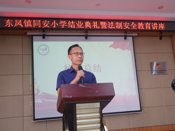 接着,由同安小学罗权鎏校长进行学期工作总结。罗校长回顾了一学期的教育教学工作,总结了本学期学校师生取得的荣誉和成绩,对师生们默默耕耘、辛勤付出给予了充分的肯定。同时,罗校长也对今后的学习和工作提出殷切的希望,对学生的假期生活提出如下要求:合理安排时间、倡导精神文明、关注时事形式、增进亲子交流、坚持身体锻炼、加强自我保护,衷心希望学生安全每一天,快乐过暑假。