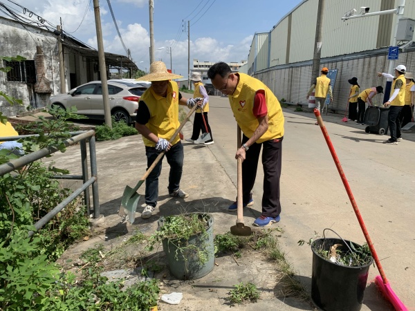 教师们身穿“黄马甲”,手拿扫把、垃圾桶等工具,冒着炎炎烈日,开启了志愿活动。一队教师佩戴工作证,入户宣传,发动群众自行清理房前屋后杂物,协助群众做好清洁工作。二队教师按区域分工,有顺序有组织地清洁校园及校园周边两百米范围的环境。教师们分工合作,重点清理了纸屑、饮料瓶、塑料袋等垃圾和废弃物,对周边的杂草进行拔除清理,教师所到之处,大大小小的垃圾无一遗漏。