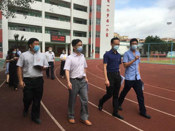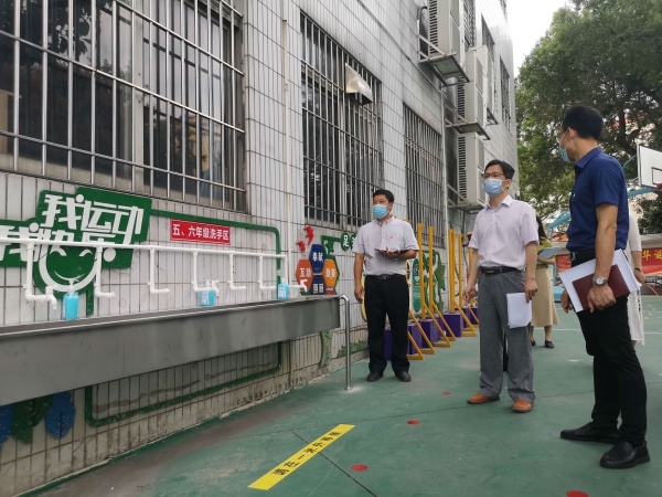 为贯彻落实中山市春季师生返校的验收工作要求, 全面保障全体师生健康,安全有序地迎接学生返校复课,东凤镇同安小学不断落实《中山市中小学校幼儿园学生返校准备工作验收表》,做好各项防疫措施,时刻为复学做好准备。5月9日,在东凤镇文体教育局黄春光局长的带领下,东凤卫计局、市场监测管理局、公安局等部门组成的检查组一行,对同安小学进行学生返校复学的检查与验收工作。