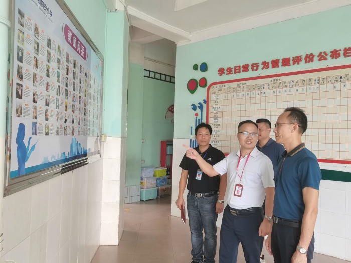 为进一步指导学校规范办学行为,提高教学质量,落实立德树人的根本任务,2022年9月20日,中山市督学赖立章到东凤镇同安小学进行“双减”、规范办学的专项督导检查工作。同安小学校长罗权鎏全程陪同督导检查。