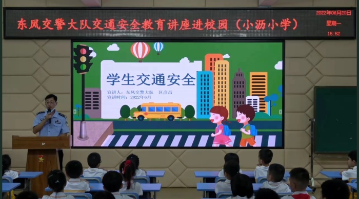 暑假快要来临,为了进一步提高师生的交通安全意识和自我防范能力,2022年6月20日下午,东凤镇交警大队区彦昌警官受邀走进小沥小学,开展交通安全教育活动,为全校师生带来一场生动又警醒的交通安全宣传讲座。
