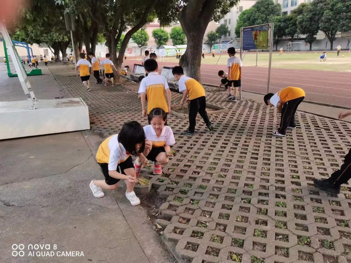 首先是29日下午的第一节课,该校40个班统一开展了以劳动为主题的班会课,班主任们通过形式丰富的多媒体课件,耐心向孩子们讲解了关于劳动节的相关知识,让学生了解劳动节的由来、意义,了解中国各年代的劳模,学习劳模精神,并鼓励学生学习身边无私奉献的劳动者,唤醒了学生们内心对劳动的热爱,激发了他们的劳动热情,圆满完成了活动的第一项内容——“我爱劳动增份情”。在随后的第二项内容“我为我校添点色”,则是按照低中高年级完成各自的劳动任务:一二年级是到操场捡树叶;三四年级是教室大扫除、清理一号教学楼橱窗;五六年级是教室大扫除、到植物园劳作。孩子们兴致盎然,一听说可以为校园打扫卫生时,难以抑制内心的喜悦大声欢呼。不管是教学楼还是操场,都有老师带领孩子辛勤劳作的身影。劳动中,每个孩子都不怕脏不怕累,争先恐后地完成各自的劳动任务,汗珠在头上洒落,脸上依旧洋溢着欢快的笑容,不多久,整个校园被收拾得干净明亮。