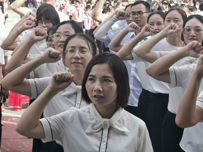 9月10日早上,在庄严的升旗仪式过后,伴随着热烈的掌声,蓝桂珊副校长首先向辛勤工作的教师表达谢意,并送上了节日的问候。接着由少先队员代表为教师们献上他们精心准备的诗歌朗诵《师恩颂》,表达了孩子们对教师们的感恩之情。紧接着,由新教师代表朗诵《神圣的三尺讲台》,让全体师生感受到了初出茅庐的他们,立志坚定守护一方净土,对教学事业无怨无悔付出的决心。随后,王玉婷老师的一支独舞把活动推向高潮,优美的舞姿深深地吸引了大家的目光。活动接近尾声,少先队员代表们为全体教师送上学校为教师们准备的小蛋糕,以庆祝第37个教师节。最后,陈名胜主任带领全体教师面向国旗庄严宣誓:忠于人民教育事业,贯彻国家教育方针,履行教师神圣职责,为中华民族之复兴,为人类文明之进步,奋斗终身!