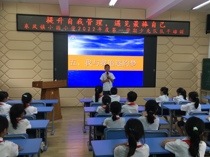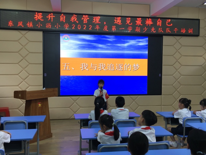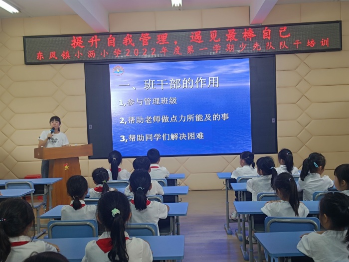 会议伊始,小沥小学大队辅导员梁月仪从少先队队干部应具备的素质、修养、工作方法等方面进行了培训,就队干部在少先队管理中的作用、职责、义务等方面进行了详细的讲解,强调队干部要起好模范带头作用。听取梁老师的分享后,队干部们纷纷发表其今后的工作目标并分享各自过往切实可行的做法。最后,黎三妹副校长对队干部提出了新的要求和希望,强调少先队干部要在学校管理建设中发挥“领”与“导”的作用,履行好自己的职责,用自己的行动带好“头”,不断发挥自己的聪明才智,把工作干得更出色。