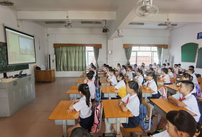 新的学期,开启新的希望,承载新的梦想。9月1日,中山市东凤镇小沥小学全体师生迎来了新的学期,沉寂的校园再次沸腾,孩子们早早地来到了校门口,在老师的安排下测量体温,整齐有序地进入校园。上午8:30,小沥小学全体师生以饱满的热情参加了开学典礼。开学典礼主会场设在阶梯室,没有安排到阶梯室的班级在教室以观看钉钉直播的方式参加开学典礼。