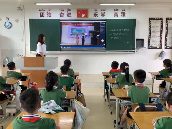 “人间四月芳菲尽,西小花儿绽风采。”为进一步丰富校园文化生活,努力营造积极向上、百花齐放、健康文明的读书文化氛围,丰富同学们的课余文化生活,同时也给同学们提供锻炼自己、展示自己的机会,学校以读书月为契机,举办了丰富多彩的系列读书活动。4月27日下午,东凤镇西罟小学举行了“我是美文诵读人”朗诵比赛。赛场设在阶梯室,各班采用钉钉直播的形式。