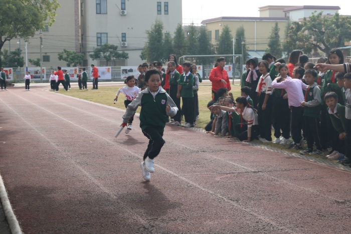 听!第一声枪声响起,整个赛场顿时人头攒动,耳边回响着铿锵有力的加油呐喊,50米跑、立定跳远、垒球、接力赛等一场场精彩的赛事便有序而激烈地上演了。赛场上,每个运动员都在尽自己最大的努力坚持着,勇敢拼搏,无畏挑战。班级的啦啦队也齐心协力,为运动员们加油鼓劲,整个赛场上挥洒着运动员们的汗水,洋溢着运动的激情与朝气,也充满着感动与温情。