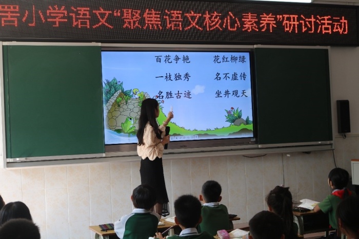 首先由张文娜老师执教《坐井观天》。课堂上,张老师通过展示图片、联系生活实际,有效引导学生领悟生字词的音形义。
