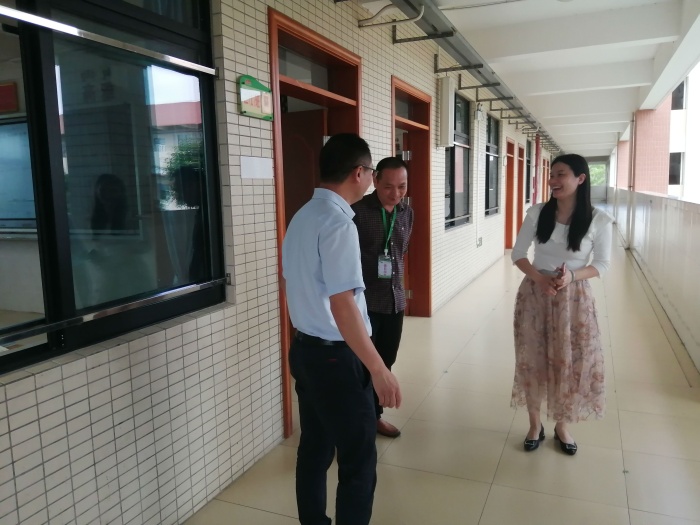 首先,崔校长汇报了开学以来学校的教育教学开展情况。接着,在崔校长陪同下,梁慧老师参观了校园和学校功能室,包括阅览室、图书室、心理辅导室,了解了学生在校的动态,也随堂走进教室,了解学生的上课情况。