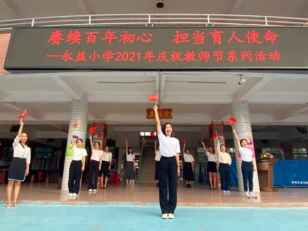 为庆祝第37个教师节,营造尊师重教的氛围,永益小学于2021年9月10月上午开展了“赓续百年初心,担当育人使命”主题庆祝活动。