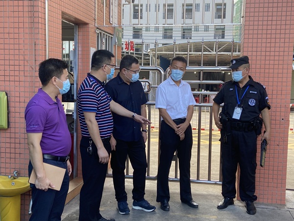 学校安保工作是筑牢学校疫情防控的第一道防线,保安工作尤为重要。李翔宇认真细致地检查了校园安全,并强调校门是第一关卡,务必要做好人员的出入登记工作,决不随意让外来人员进入校园。