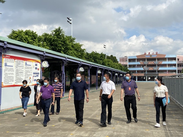 为加强学校新冠肺炎疫情防控,精准有力做好师生疫情防控工作,确保学校师生安全,东凤镇镇长李翔宇、教体文旅局局长李仕标、教育和体育事务中心主任熊小潮一行莅临永益小学对秋季开学疫情防控工作措施落实情况进行指导。永益村书记周志华、永益小学蒋汉云校长及学校行政陪同检查,并详细汇报了工作的开展情况。