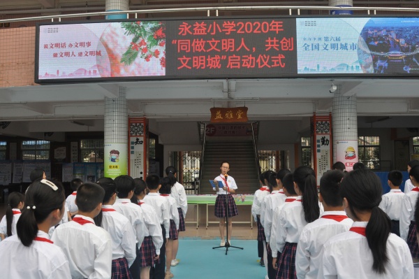 今年是中山创建全国文明城市的关键年。为助力中山全国文明城市的创建工作,切实提升全校师生的文明素质,根据中山市教育和体育局《关于在全市中小学幼儿园开展“六个一”创文实践活动的通知》精神,2020年7月10日上午东凤镇永益小学举行“同做文明人,共创文明城”创文启动仪式暨全体师生签名活动。