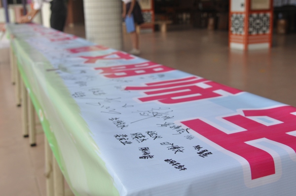 最后,师生代表举行“创文明城市,建文明校园,做文明师生”签字仪式。老师们,同学们在横幅上写下自己的名字,以表决心,争做文明创建的先行者,做文明师生。