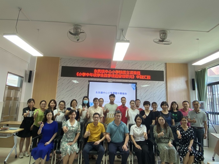 为进一步提升教师教育科研水平,及时了解课题研究工作进展情况,交流和分享课题研究成果和实践经验,促进教师的专业成长,2022年6月23日下午,东凤镇中心小学数学科组举行了镇级立项课题《小学生数学小课题研究能力的培养策略研究》《小学中年级学生数学错题管理研究》中期检查报告会,出席报告会的有东凤镇中心小学李肖芳副校长、安乐小学刘小愉主任,凤鸣小学黄注强老师以及全体数学老师。