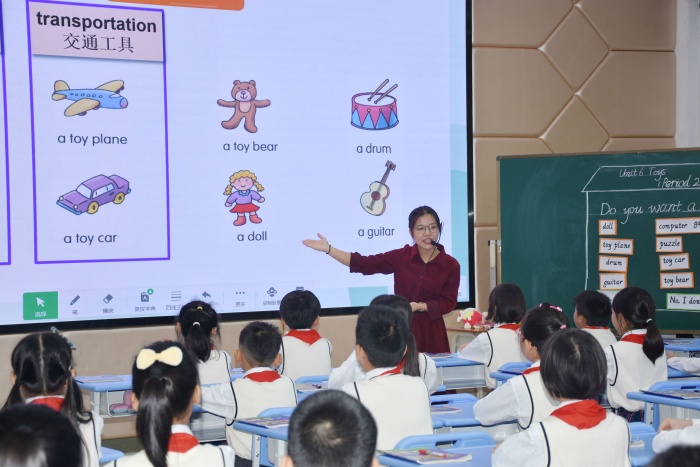 本次活动首先观摩两位新老师的课例。第一节现场展示课由安乐小学的廖文瑶老师授课,内容为广东开心版四年级上册Unit6 Toys的故事教学。在课堂中廖老师以游戏引入,语音语调生动自然,发挥了教师的主导作用,学生在展示环节中表现得落落大方,课堂效果显著。第二节现场展示课由中心小学的林观清老师授课,内容为广东开心版四年级上册Unit6 Toys的词汇教学。林老师教学风格亲切自然,基本功扎实,以轻松活泼的方式组织教学,充分调动了学生学习的积极性,同时注重培养学生对语言的运用,让学生在小组活动中通过分享自己的玩具来习得语言。