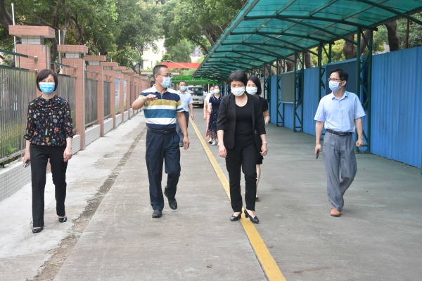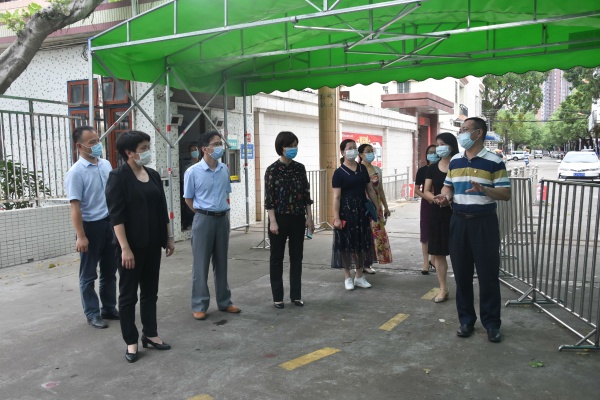 东凤镇党委罗绮冬书记一行四人在陪同人员的引领下检查了校园环境卫生、消毒杀毒及校建工程情况,详细询问了学校疫情防控措施,特别是学生入校体温检测、中午就餐、教室上课的具体情况,并听取了胡小明校长的返校复课准备工作汇报。