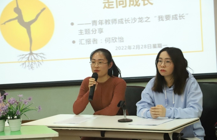 活动第二环节是由周诗莹、何欣怡、王泽歆和莫凯煌四位青年教师代表分享自己工作以来的收获与感悟。周诗莹老师分享的主题是:真抓实干出成效,她从班干部的培养、言传身教这两个方面讲述了自己兼任班主任和语文老师所积累的经验。她把“认真”作为自己的工作准则,每天利用课余时间辅导学生,钻研教材,而这一切默默付出的努力成为了她迅速成长的催化剂。何欣怡老师围绕“反思与学习”进行分享,她把自身作为新教师在工作中出现各种问题进行了深入剖析和反思,并在许多经验丰富的老师们温暖的鼓舞下,她发现自己重新拥有了在教学中展现自我的勇气,终于在一次次成功的课堂教学中得以蜕变。王泽歆老师结合自己从教多年的宝贵经历中提出了“积极主动是促进教师专业成长的利器”的观点,作为一名合格的教师,教龄有多长不是衡量专业能力的标准,只有扎实的基本功和持续性地学习,才能丰富自身。莫凯煌老师分别从学会自主、培养自信和他人的鼓励这三个方面讲述了她教学中遇到的难题与收获的成果,一步一个脚印,相信努力,不害怕失败,是她得到大家认可的钥匙。在如此温馨的分享交流中,在场的老师们认真聆听,受益匪浅。