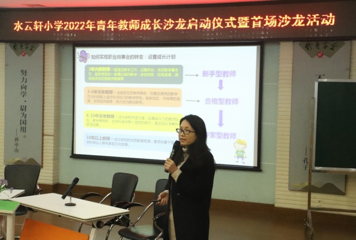 为了给青年教师成长搭建学习、交流及展示的平台,共享彼此成长过程中的实践经验和理论思考,推动青年教师对职业责任感的认同以及自我发展空间的突破,让更多的青年教师脱颖而出,2月28日下午,东区水云轩小学在多媒体室开展以“向上生长,向下扎根”为主题的青年教师成长沙龙启动仪式暨首场沙龙活动。