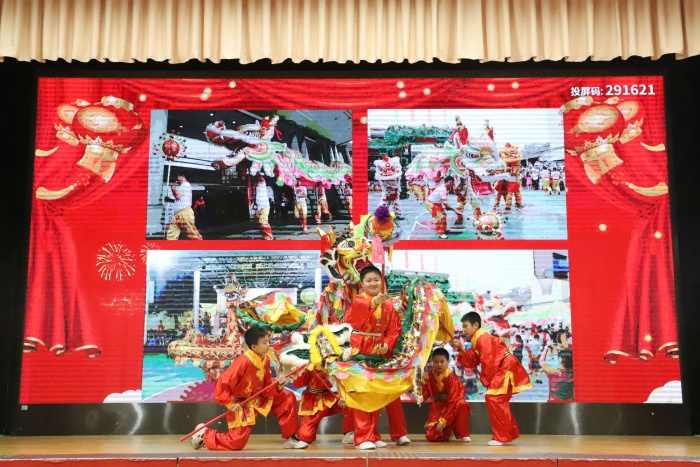 接着轩小的“起湾金龙”舞龙舞狮队为师生们带来节目《金龙舞动迎新春》。