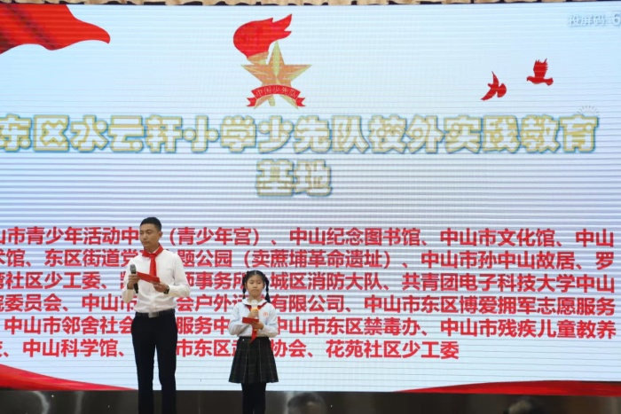 为加快构建新时代少先队社会化工作体系,不断拓宽少先队员校外实践活动载体,积极配合国家“双减”政策落地,东区水云轩小学与18个校外实践单位签约,形成共建单位,并由东区水云轩小学少工委主任林小舟为校外辅导员颁发聘书。