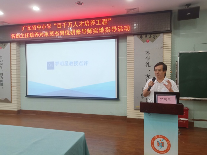 罗明星教授充分肯定莫杰老师的研修汇报并对莫老师多年来只集中做一件事,建设一个促进学生和老师共同成长的班给予高度评价和赞赏,并为莫杰名班主任研修活动、班主任工作室、班级建设的未来发展与定位以及拓展指明了进一步成长的方向。鼓励莫老师做好研究工作,在三年内提升学术研究水平,把实践凝练成理论,积极申报课题,创建校本特色班集体,发挥示范辐射作用,立足本校,带动周边,辐射省内外。
